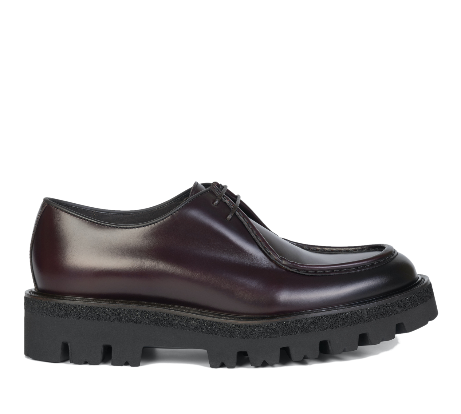 212U017 – si tratta di uno dei nostri modelli più iconici, l’ingegnere sul fondo eiger. La scarpa è prodotta in polished binder inglese color cordoban mentre la suola roccia extra light è applicata all’intersuola che è cucita alla tomaia. In sintesi abbiamo una intersuola cucita con la tomaia a cui poi viene incollato il battistrada eiger extra light. Nel mezzo della suola troviamo un inserto poroso in rubrex.